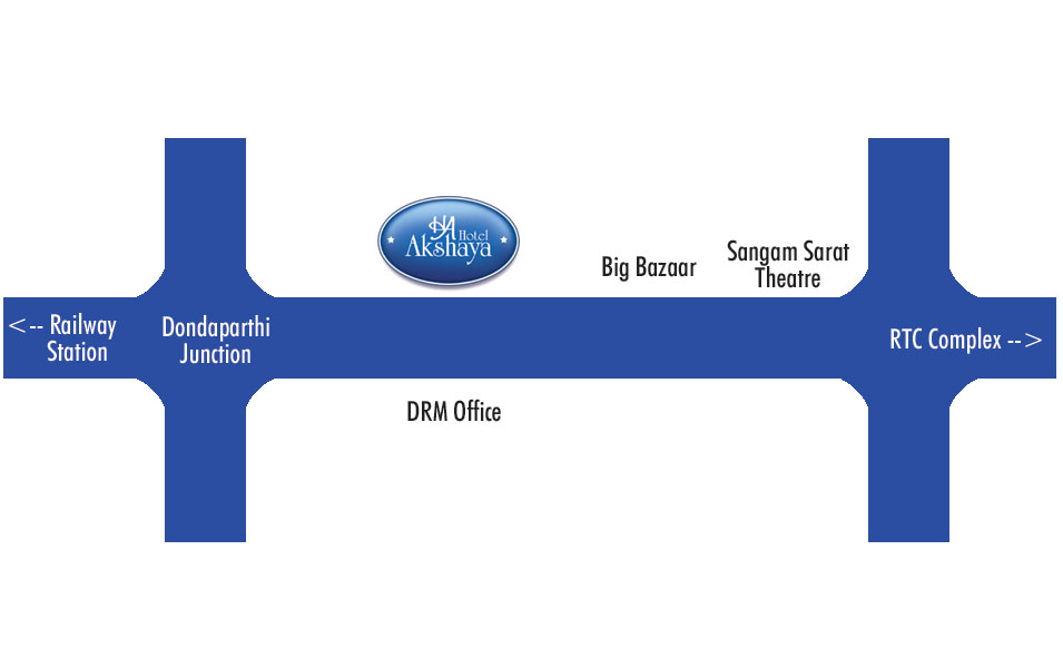 The Airport is about 7 Kms from city. The Airport is adjacent to the National Highway 7 and is well connected with Cabs and Busses. Most 38-series busses run by APSRTC have a halt at the Airport Junction bus stop. We arrange airport pickups from the airport terminal. If you are not able to arrange the pickup you can get a ‘Pre- Paid ‘taxi from the booth’s inside the airport arrival hall to the hotel. You need to be careful since the Booth operators and the drivers try to lure you to other hotels by making up excuses saying the hotel is sold out or closed. Just insist on coming straight to Akshaya Hotel. A pre paid taxi can be availed for Rs 250 to Rs 350. |