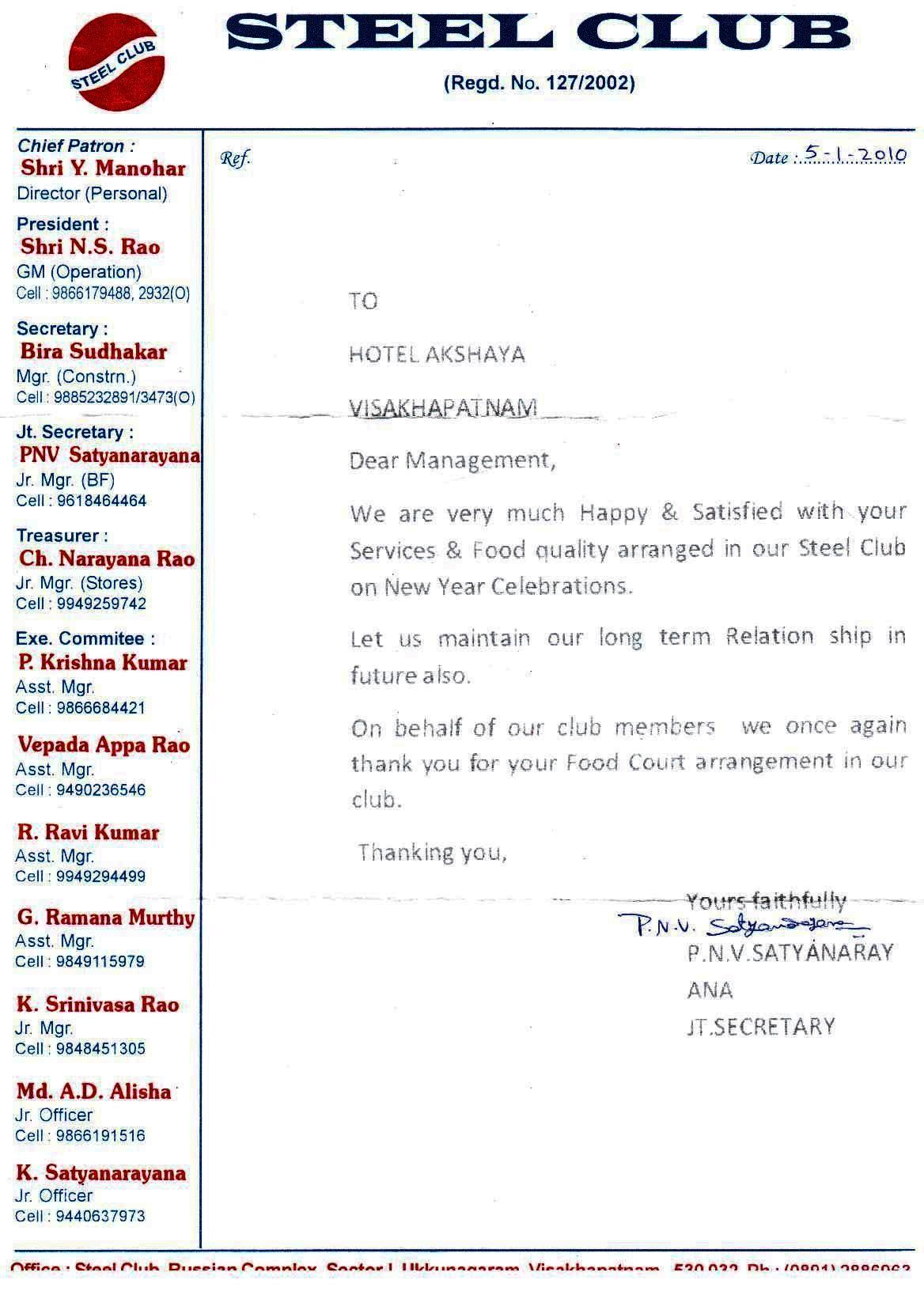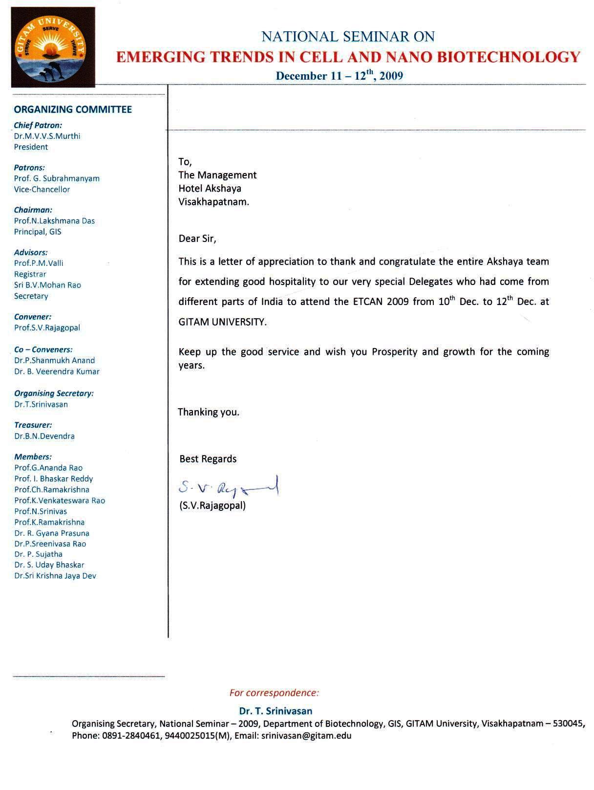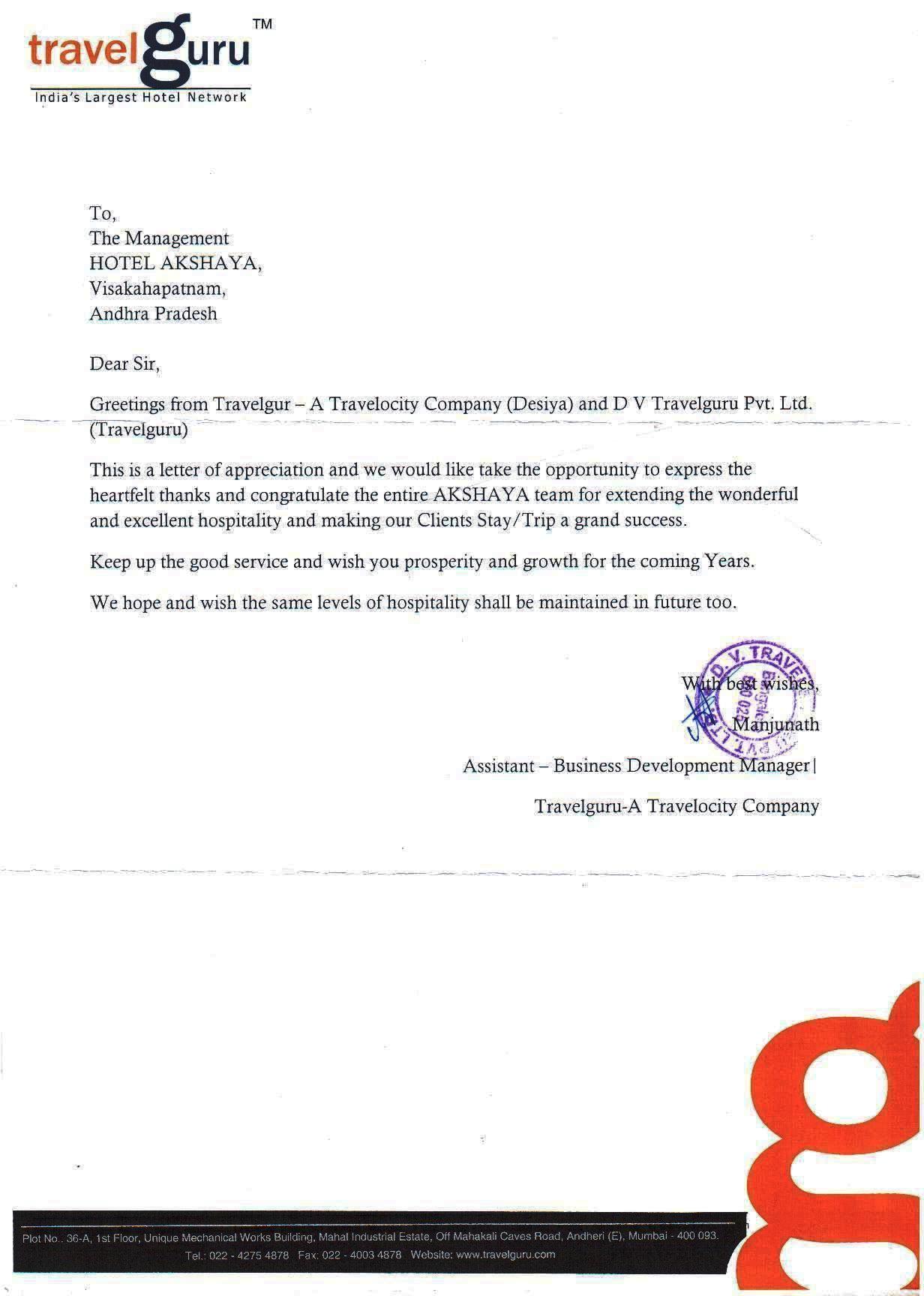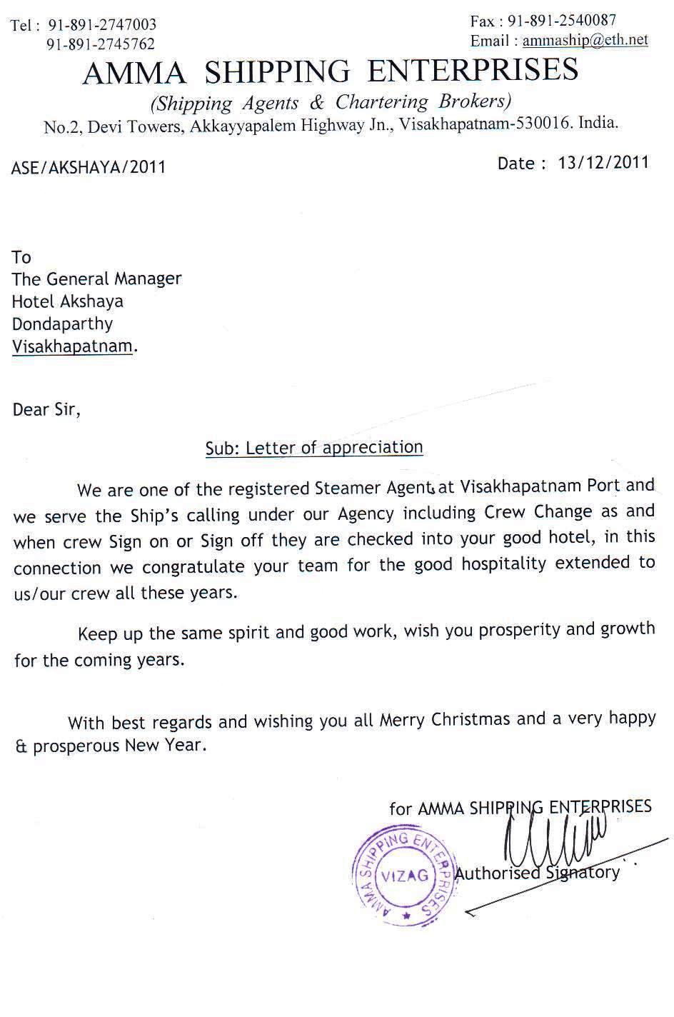Letter of Appreciation